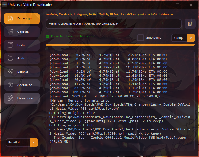 Descarga videos y audio de YouTube, Instagram, TikTok, Facebook, SoundCloud, Twitter/X, Twitch y más de 1,400 plataformas en segundos. Olvídate de sitios web sospechosos, extensiones invasivas o límites de descarga. UVD es tu puerta de entrada a descargas ilimitadas, seguras y en alta calidad.